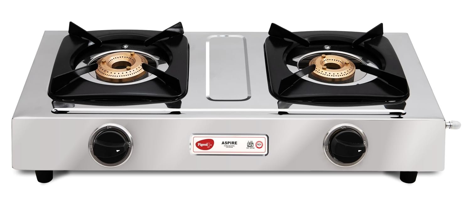 PIGEON BY STOVEKRAFT ASPIRE STAINLESS STEEL GAS STOVE 2 BURNER I MANUAL IGNITION I HIGH POWERED BRASS BURNER I ISI CERTIFIED I 2 YEAR WARRANTY PI_0726