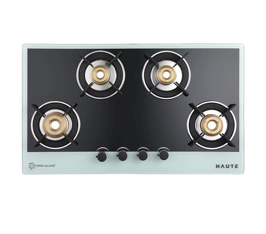 Gas Stoves haute kitchen haute evoque series 2.0 x sabaf black&white 4 burner manual ignition glass gas stove |8mm atom glass |door step service | 5 years warranty on burner, glass, valves by haute home