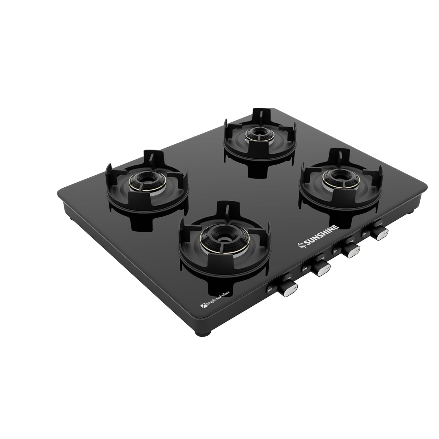 SUNSHINE REGAL PRO 4 BURNER | 4 BURNER GLASS GAS STOVE | TOUGHENED GLASS COOKTOP | ISI CERTIFIED | MANUAL IGNITION | 5G TECHNOLOGY, LPG READY & PNG COMPATIBLE (PREMIUM BLACK) PI_0738
