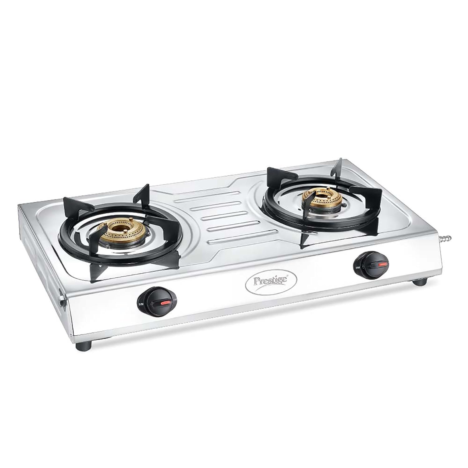 PRESTIGE PRIME LP GAS STOVE WITH 2 BRASS BURNERS(STAINLESS STEEL, MANUAL) PI_0739
