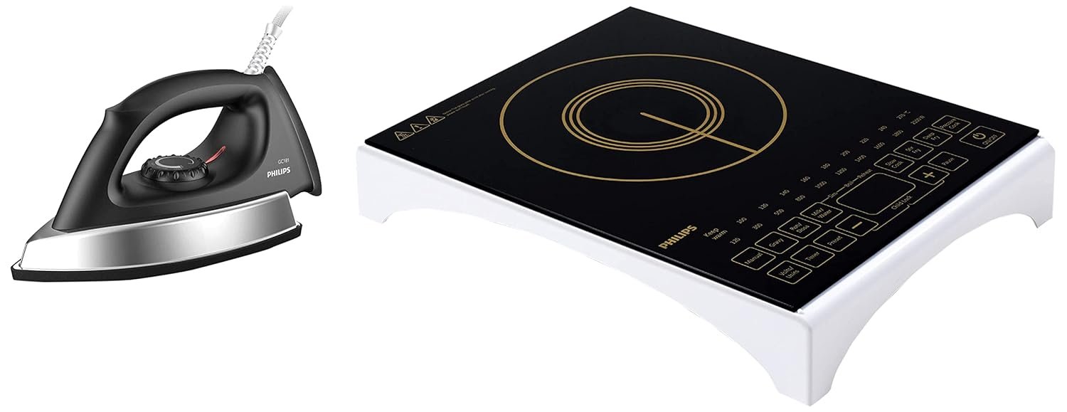 PHILIPS VIVA COLLECTION HD4938/01 2100-WATT INDUCTION COOKTOP WITH SENSOR TOUCH (BLACK) & PHILIPS GC181 HEAVY WEIGHT 1000-WATT DRY IRON (BLACK) PI_0639