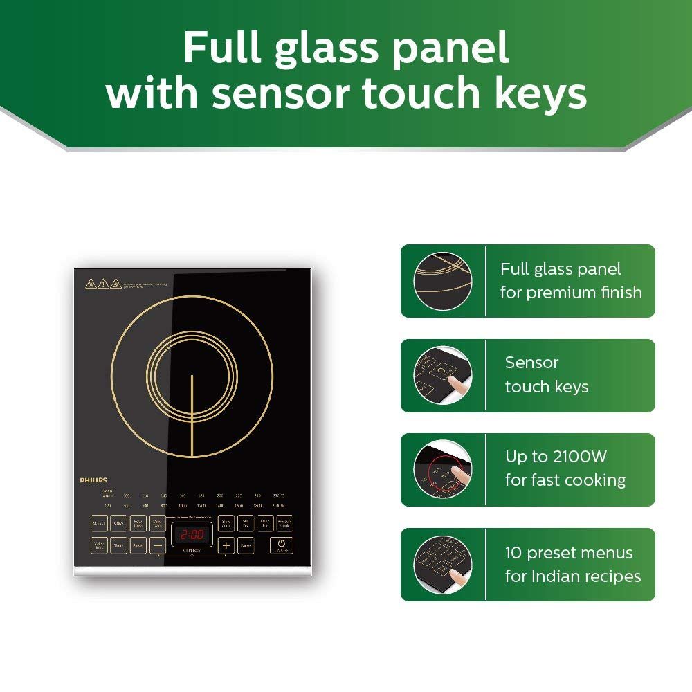 PHILIPS VIVA COLLECTION HD4938/01 2100-WATT GLASS INDUCTION COOKTOP WITH SENSOR TOUCH & FULL CRYSTAL GLASS (BLACK) PI_0635