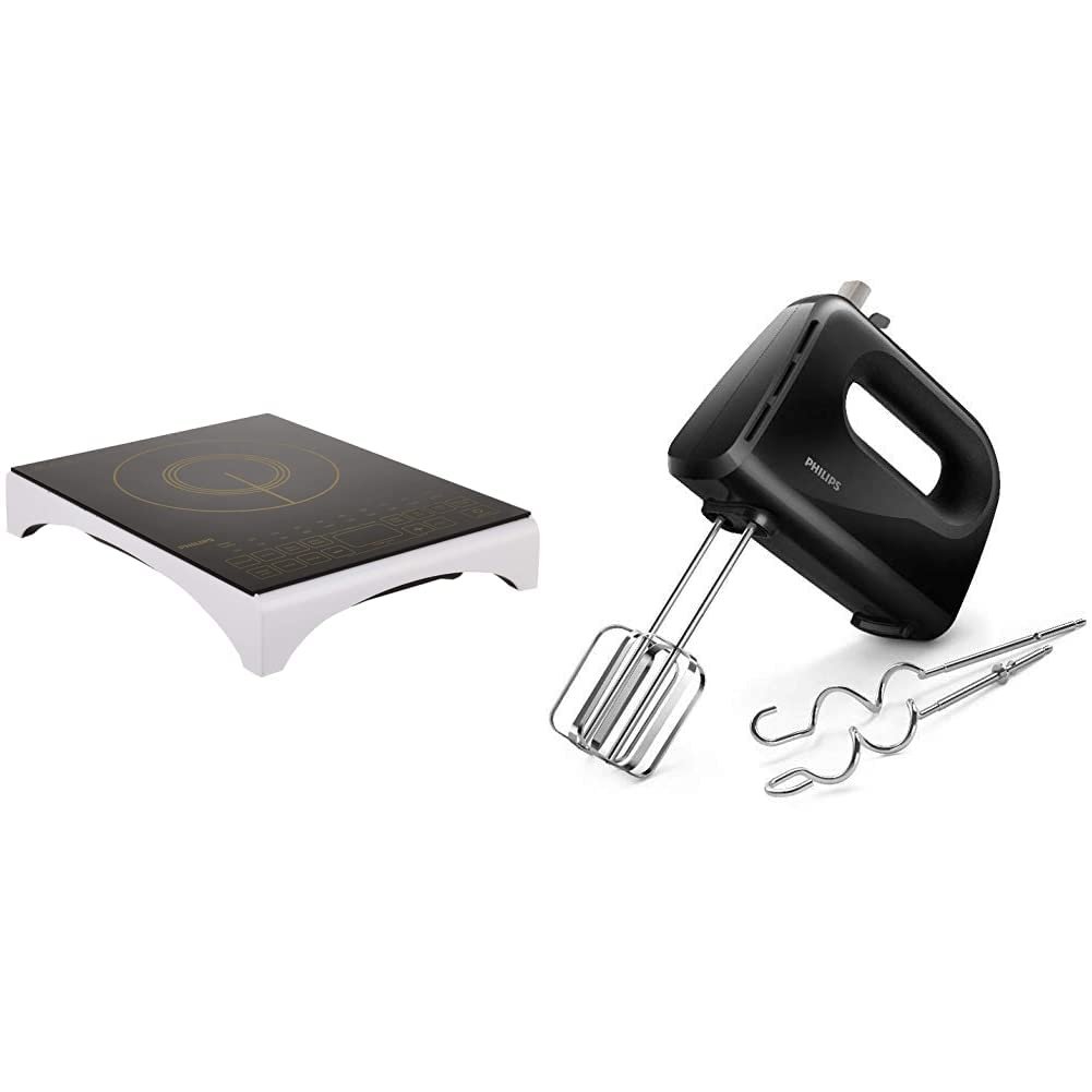 PHILIPS VIVA COLLECTION HD4938/01 2100-WATT GLASS INDUCTION COOKTOP WITH SENSOR TOUCH & PHILIPS 300 WATT LIGHTWEIGHT HAND MIXER, BLENDER WITH 5 SPEED CONTROL SETTINGS PI_0641