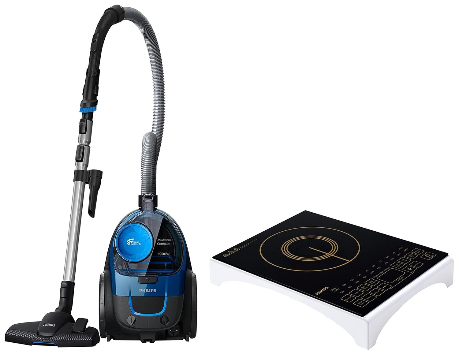 PHILIPS POWERPRO FC9352/01 COMPACT BAGLESS VACUUM CLEANER (BLUE) AND VIVA COLLECTION HD4938/01 2100-WATT INDUCTION COOKTOP WITH SENSOR TOUCH (BLACK) PI_0644