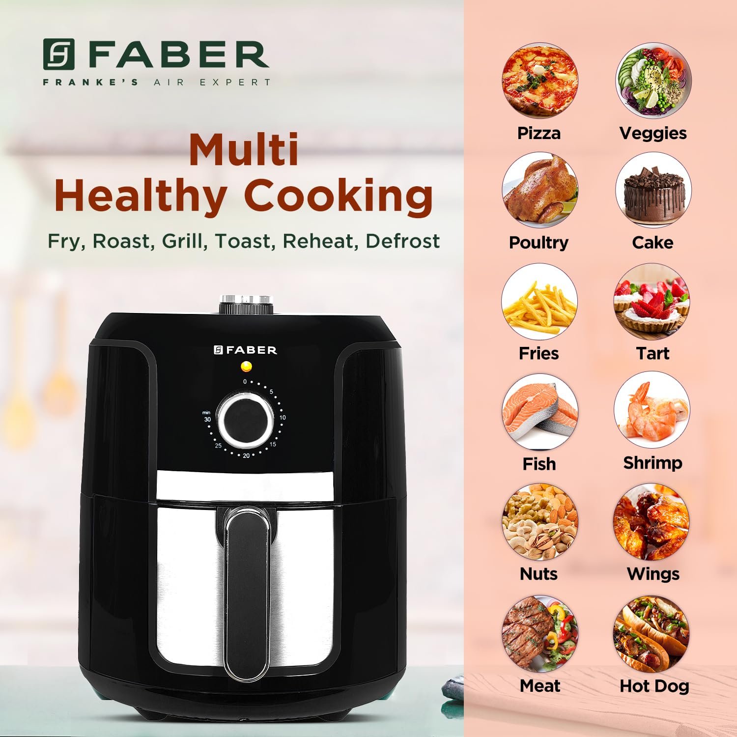 Home & Kitchen Appliances Faber 4L 1350W Manual Air Fryer| Fry, Bake, Roast, Toast, Grill & Reheat (Black)