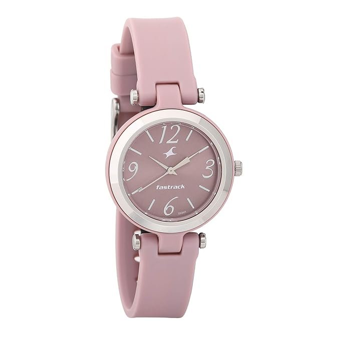 fastrack women silicone trendies analog pink dial watch-68015pp03/np68015pp03, band color-pink